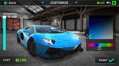2、独创的涂装编辑系统支持16层图层叠加,玩家可通过色相环精确调校出理想中的渐变效果,创作属于自己的车队标识