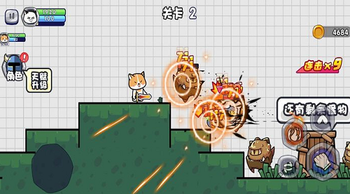 游戏支持双人联机模式,玩家可邀请好友共同操控不同属性的猫咪角色。独创的武器共鸣系统让近战爪击与远程飞镖产生元素连锁,冰冻效果与火焰爆破的组合能瞬间清屏。每通过五个关卡即可解锁神秘宝箱,收集稀有材料锻造传说级猫耳头盔。