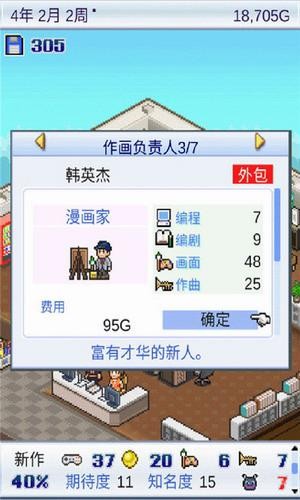 游戏内置动态平衡机制,连续开发同类作品会降低市场热度,迫使玩家不断尝试创新组合。研发过程中需合理分配美术、剧本、音效等制作环节,通过人才轮换保持创作活力。当作品获得年度最佳奖项后,可解锁特殊开发设备与隐藏人才,助力打造殿堂级游戏作品。