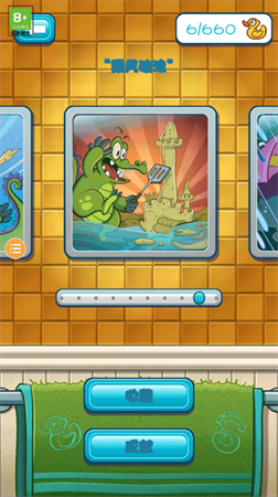 身穿橙色围裙的鳄鱼大顽固对食物有着特殊执着,唯独抗拒绿色蔬菜。玩家需巧妙运用紫色污水清理餐盘周围的藻类,帮助它维持饕餮盛宴的就餐环境。
