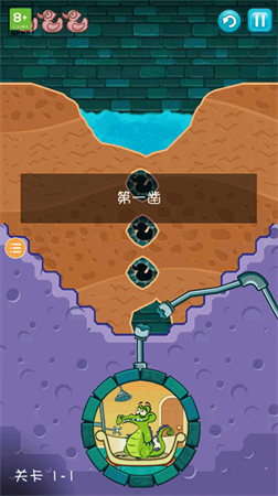 作为故事主线角色,这只戴蓝色工装帽的鳄鱼每日最期待的就是完成工作后的沐浴时光。玩家需要通过挖掘土壤构建水道,将清水精准引入它的圆形浴缸,避开沿途的陷阱与障碍。