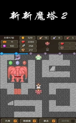 新新魔塔2经典版是一款备受玩家喜爱的像素风格冒险手游,游戏以神秘魔塔为背景展开奇幻旅程。复古的画面设计搭配简约的操作界面,瞬间将玩家带入充满挑战的地牢世界。探险者需运用智慧破解机关陷阱,通过精准计算击败不同层级的怪物,收集关键道具逐步解锁更高阶的领域。每层地图暗藏独特谜题与强力守卫,要求玩家实时调整战术策略,在冒险过程中体验解谜与战斗的双重乐趣。