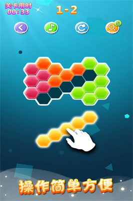 游戏设置150道精心编排的关卡矩阵,涵盖简单至专家级难度曲线,独创五维挑战模式满足不同年龄层需求。视觉表现上采用动态色彩叠加技术,每个模块移动时都会产生炫目粒子特效,配合无时间限制的设定让玩家沉浸于解谜乐趣。独创的六边形组合算法确保每次拼接都能产生全新可能性,离线单机模式更让玩家随时随地享受烧脑快感。