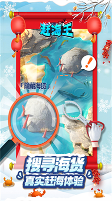 赶海王免费版海洋探险之旅是一款沉浸式海洋主题模拟游戏,玩家将化身智慧渔民,驾驶专属渔船开启海上征程。根据天气变化和鱼类活动规律,灵活搭配专业捕捞工具,制定精准捕捞方案。从近海浅滩到深海秘境,捕捉狗鲨、海鳗、大章鱼等珍稀海产,通过港口交易积累财富,逐步升级装备探索更广阔海域。