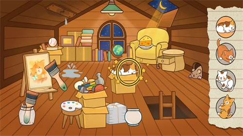 2. 超过200种猫咪行为动画库,每只猫科朋友都拥有独特的躲藏逻辑。部分特殊关卡需要结合环境音效进行判断,戴上耳机可获得更完整的解谜体验。