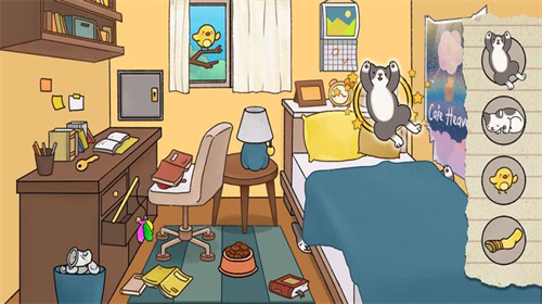游戏突破传统点击解谜模式,引入多点触控缩放系统和360度场景旋转功能。通过双指手势可细致观察窗帘褶皱里的猫耳尖,长按物品能获得材质反馈提示。针对视觉障碍玩家特别开发的高对比度模式,可通过设置菜单自由切换。