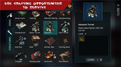 3、战术基地建设:通过模块化建造系统打造个性化避难所,部署自动炮塔、电磁屏障等防御设施,研发病毒疫苗等科技树分支提升生存几率。