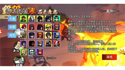1、新手建议从练习模式熟悉基础连段,推荐优先掌握宇智波佐助的千鸟突进起手技
