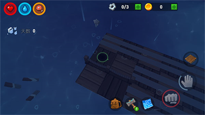 游戏采用动态海洋生态系统设计,昼夜交替与天气变化影响着资源获取节奏。玩家可利用磁铁吸附装置收集金属材料,通过三级熔炉系统将原料加工为高级建材。独创的鲨鱼行为算法使其攻击具有随机性,木筏边缘增设的防护围栏可有效抵御突袭。