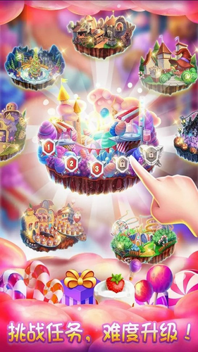 游戏在传统三消基础上引入动态关卡设计,每个甜品世界的重力系统和空间结构各不相同。玩家需要掌握「连锁反应消除」技巧,通过精准计算糖果落点触发连续爆破。特色道具系统包含12种魔法甜品,例如可改变空间结构的「彩虹漩涡糖」,能冻结时间的「冰霜薄荷糖」,每件道具都与场景元素产生独特互动。
