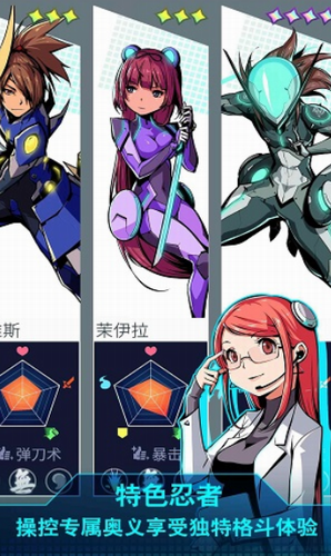 机甲忍者科幻格斗全解锁福利版将未来科技与传统忍术完美融合,采用3D卡通渲染技术构建出独特的赛博朋克场景。游戏创新性地设计了六位可自由切换的机甲忍者,每位角色配备专属粒子特效武器库,从量子手里剑到光子太刀都经过物理引擎优化,战斗时能触发真实的金属碰撞效果。
