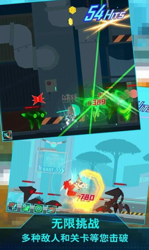 1、重力感应操控系统让闪避动作更精准,滑动屏幕可触发量子瞬移,在子弹时间内完成华丽反击