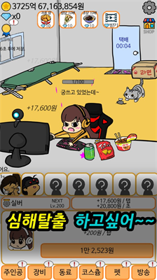 2、场景交互创新:起居室、游戏房等多元场景中,玩家可通过布置零食架、更换电脑外设等细节操作提升互动趣味