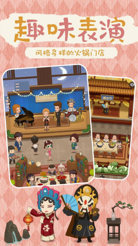 幸福路上的火锅店全新升级版上线是一款充满烟火气的模拟经营手游,采用明快的卡通画风构建出温馨的火锅世界。玩家将以创业者身份开启美食事业,从定制店铺装修到研发特色锅底,从培养员工团队到拓展连锁分店,每一步都充满经营智慧与策略抉择。