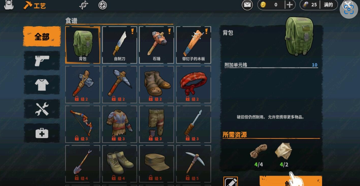 2. 非线性资源采集体系,涵盖建材、器械、医疗等12大类物资,支持200+种合成配方;