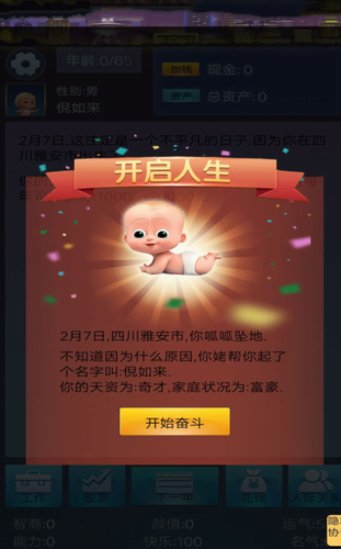 1、天赋随机系统在游戏初始阶段生成50种属性组合,涵盖智商情商等8项核心数值