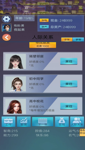 3、动态经济模型实时演算市场变化,投资决策将改变角色财务状况