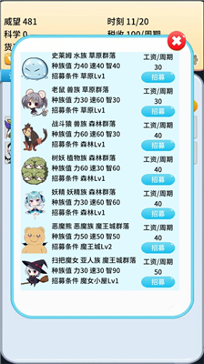 4、员工培养系统支持个性化发展,每位魔物可觉醒三种专属进阶形态