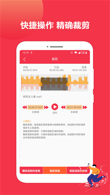 4、精准片段截取:通过时间轴精确定位,支持帧级音频切割,轻松保存音乐高潮片段或创建手机铃声。