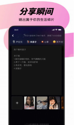 1、动态广场支持九宫格图片与15秒短视频发布,内置智能美颜与AR贴纸效果