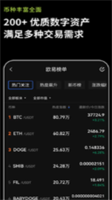 2. 支持百余种主流数字资产的现货与合约交易服务