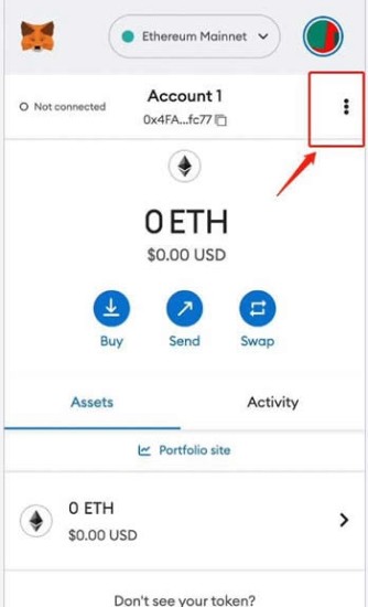 1、启动小狐钱包应用程序,于主界面顶部导航栏定位账户标识按钮。该圆形图标通常显示当前账户缩略信息,点击后可跳转至账户管理中枢。