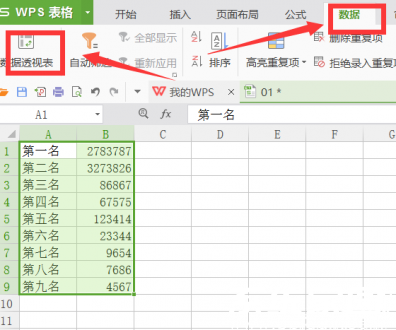 2、切换至顶部菜单栏的「数据」选项卡,在左侧功能组中找到「数据透视表」按钮。此处需注意版本差异,部分WPS个人版可能将此功能归类在「插入」菜单下,企业版则保持常规布局。