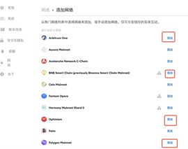 系统将呈现预置的区块链网络列表,包含以太坊、BSC、Polygon等常见公链选项。若需添加其他生态网络,可通过滑动页面查看完整列表或使用搜索框精准定位。